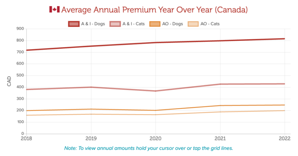 According to data from the North American Pet Health Insurance Association (NAPHIA), in 2024, the average monthly premiums in Canada were: